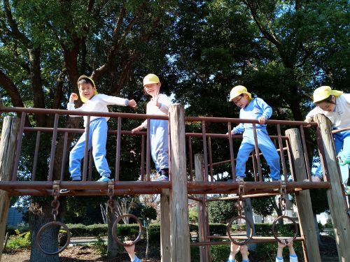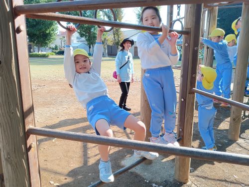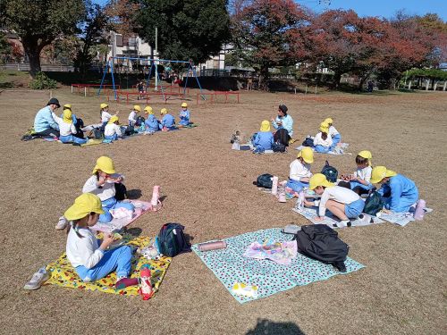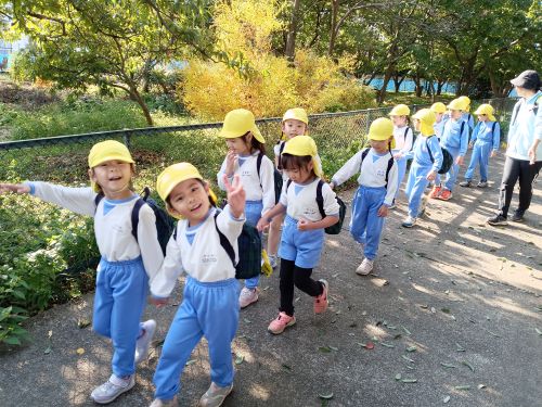 秋の歩き遠足で、きりん組はわんぱく公園にいきました。