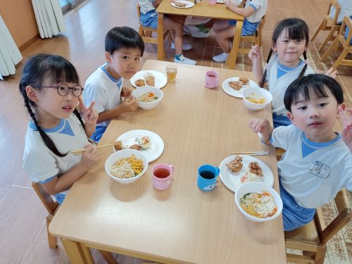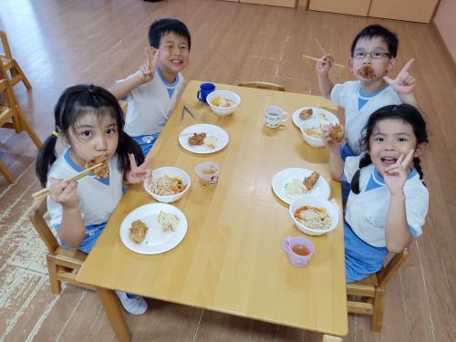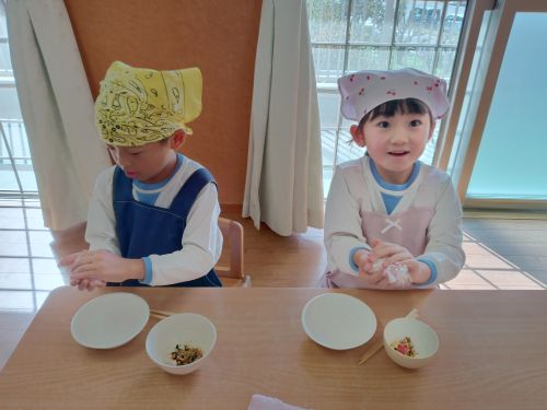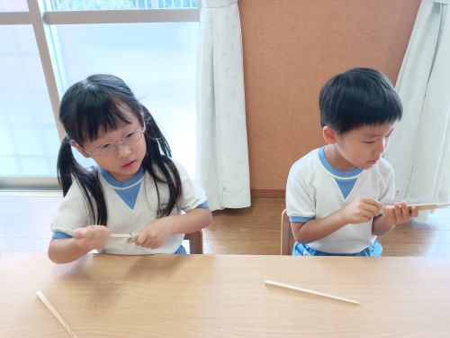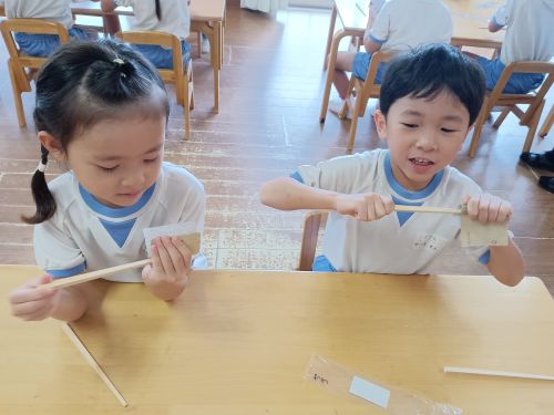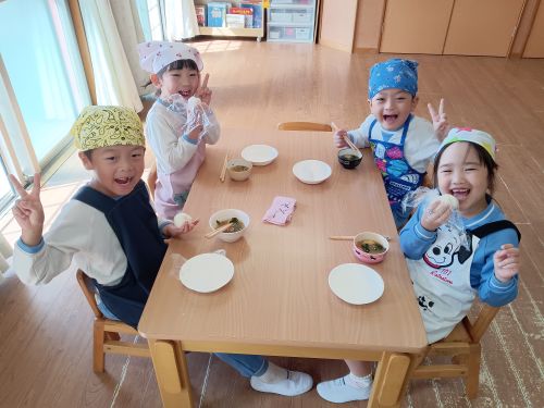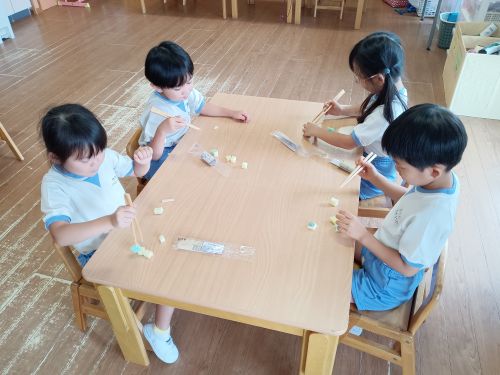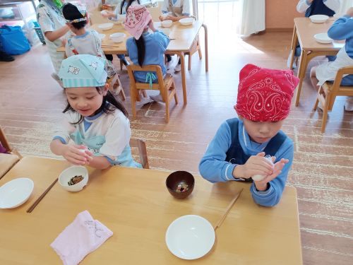 1月頃からきりん組さんは小学校への準備のため、自分で箸を持ってきて給食を食べるようになるので、