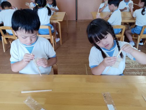 箸を削るのは結構根気のいる作業で、スルスルと滑らかになるまで、みんな一生懸命に削っていました。