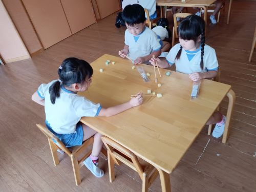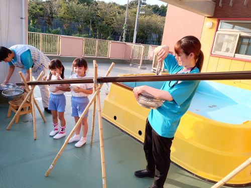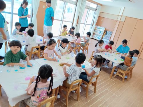 今年のお泊り会では、宝探しゲームや、スライム作り、流しそうめんなどなど楽しいことが盛りだくさんでした。
