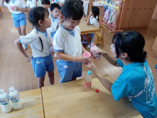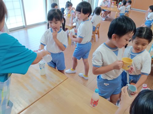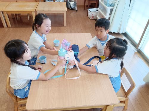 お友達と「かんぱーい!!」と言って楽しんでいる姿も!