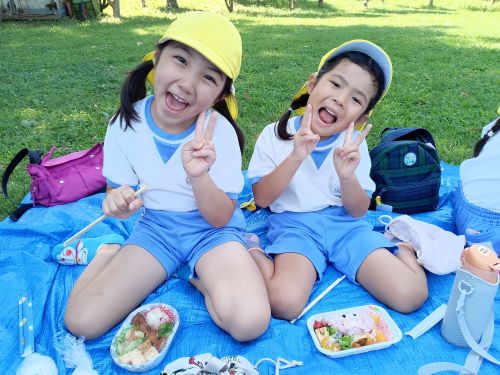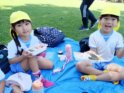 おいしそうなお弁当を見せ合いながら、とってもうれしそうに食べていました。