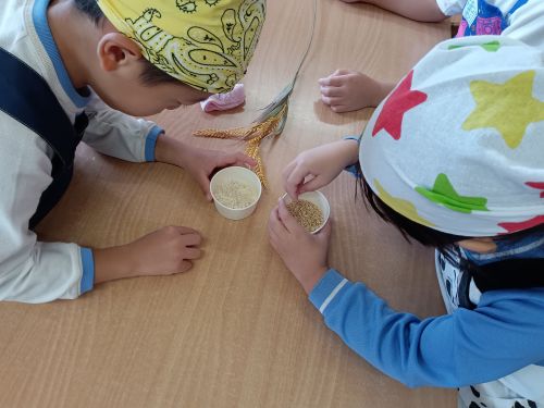 はじめに稲穂の状態のお米、玄米、白米と普段食べている状態になる過程をみました。