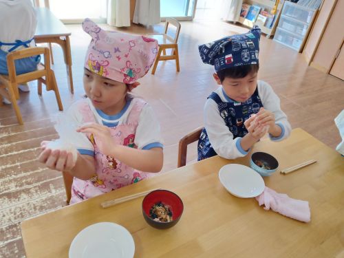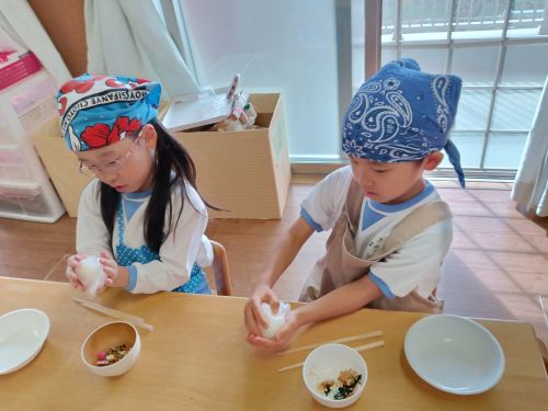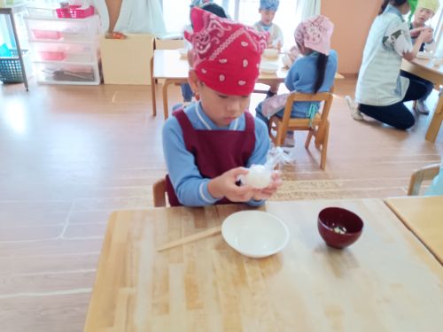 講師の先生を招いて、おにぎりとみそ汁作りを行いました。