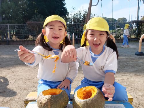 かぼちゃを収穫すると、「かぼちゃ食べたい!」「かぼちゃのおばけにして飾りたい!」という声が。