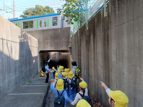 途中、線路下を通っていくのですが、そこを通ろうとした時にちょうど電車が!!