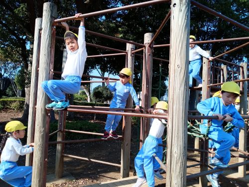 公園にはいろいろな遊具があり、大興奮のこどもたち。