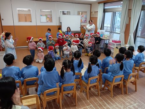 きりん組さんが前に出て、クリスマスソングを歌ってくれたり、