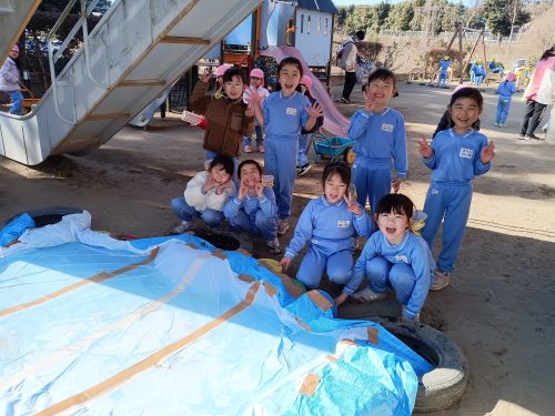 前に戸外が寒くて砂場の砂が固くなっていることがありました。