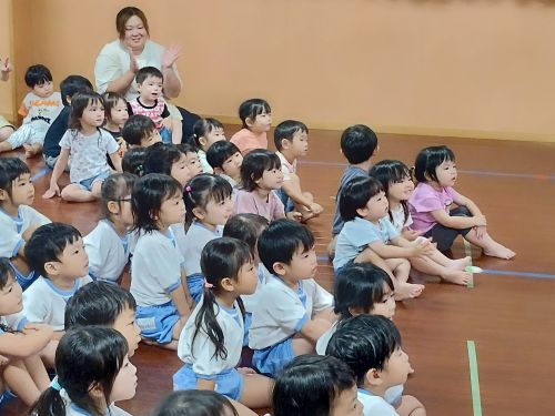 ひよこ組やりす組のお友達は、はじめて観劇する子がほとんどなので、なにが始まるんだろう??と不思議そうな表情も見られました。